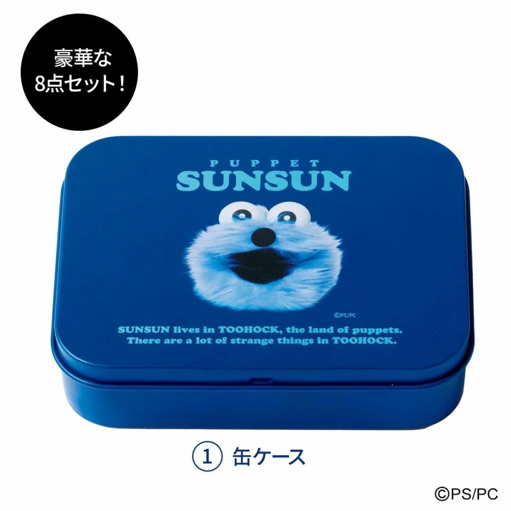 パペットスンスンとのコラボレーションによる「かわいくて便利な缶ケース入りミニ文具セット」です。