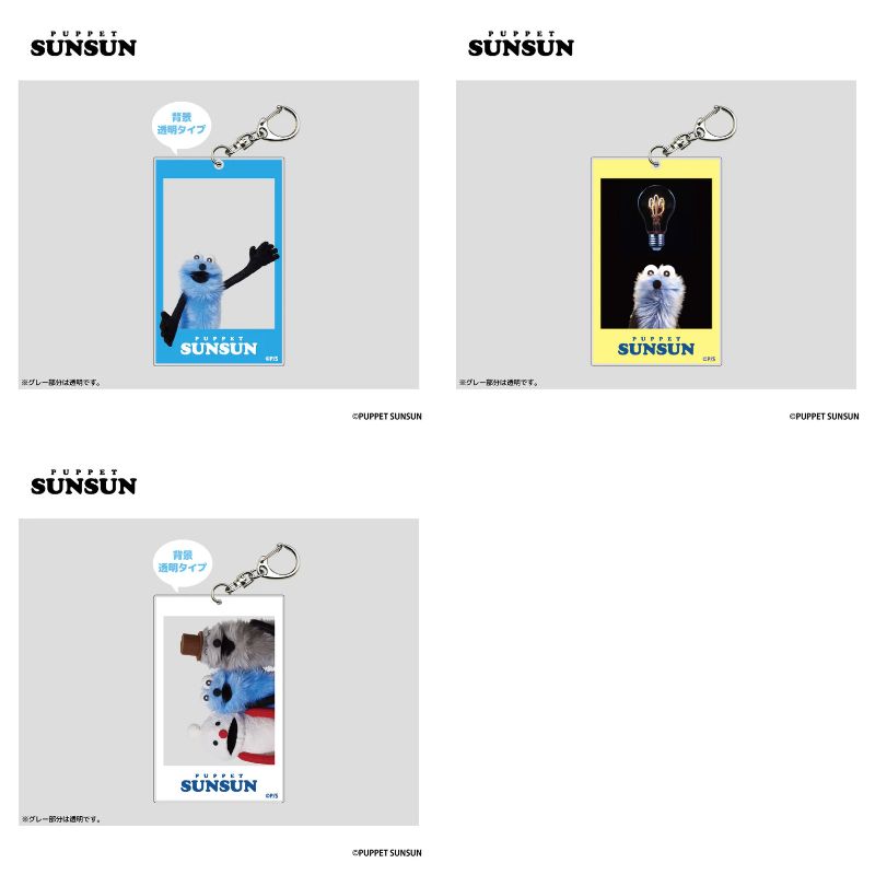 スンスン、スンスン(電球)、集合の3種類がラインナップされているフォト風のアクリルキーホルダーです。